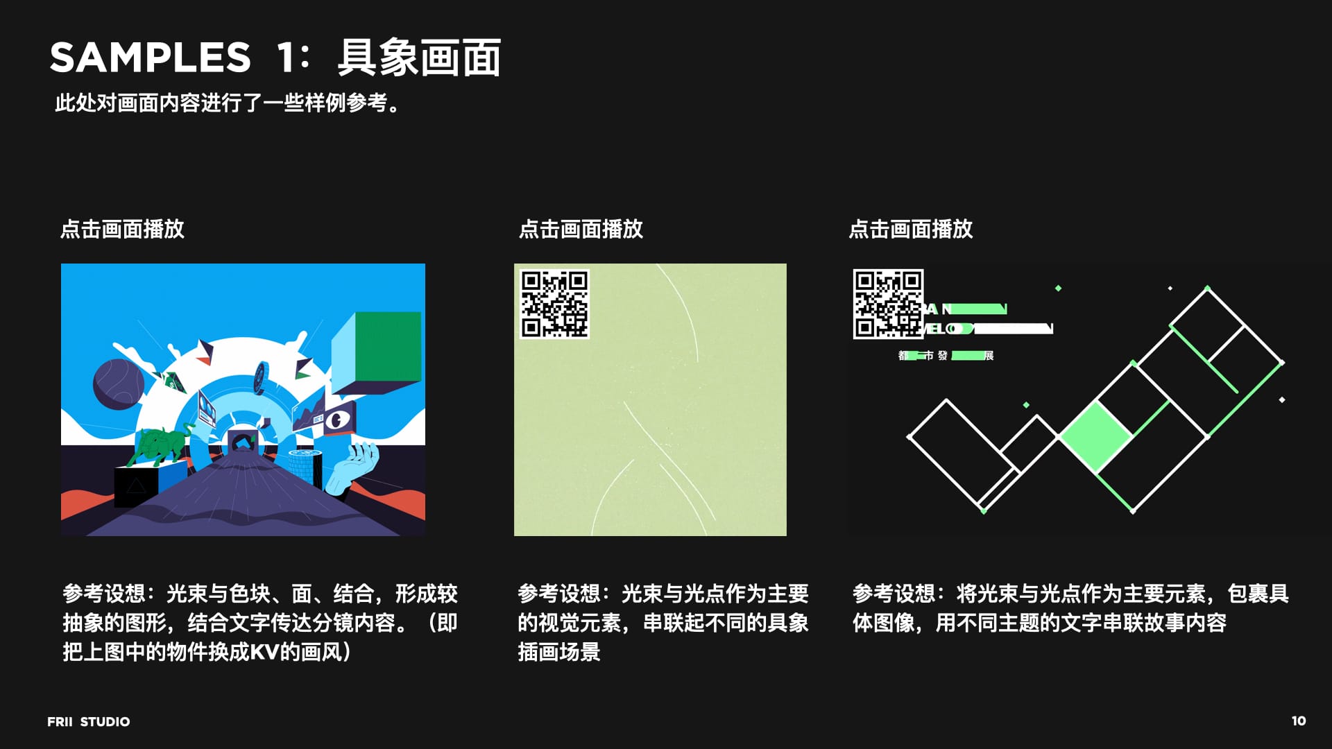 除了从KV获取设计元素,我们也会从侧面获取新的设计可能。FRII给出相关的设计变体,并找出相应的参考(此处不再列出),解释其元素特征与优劣,与客户一起讨论后续的视觉呈现可能