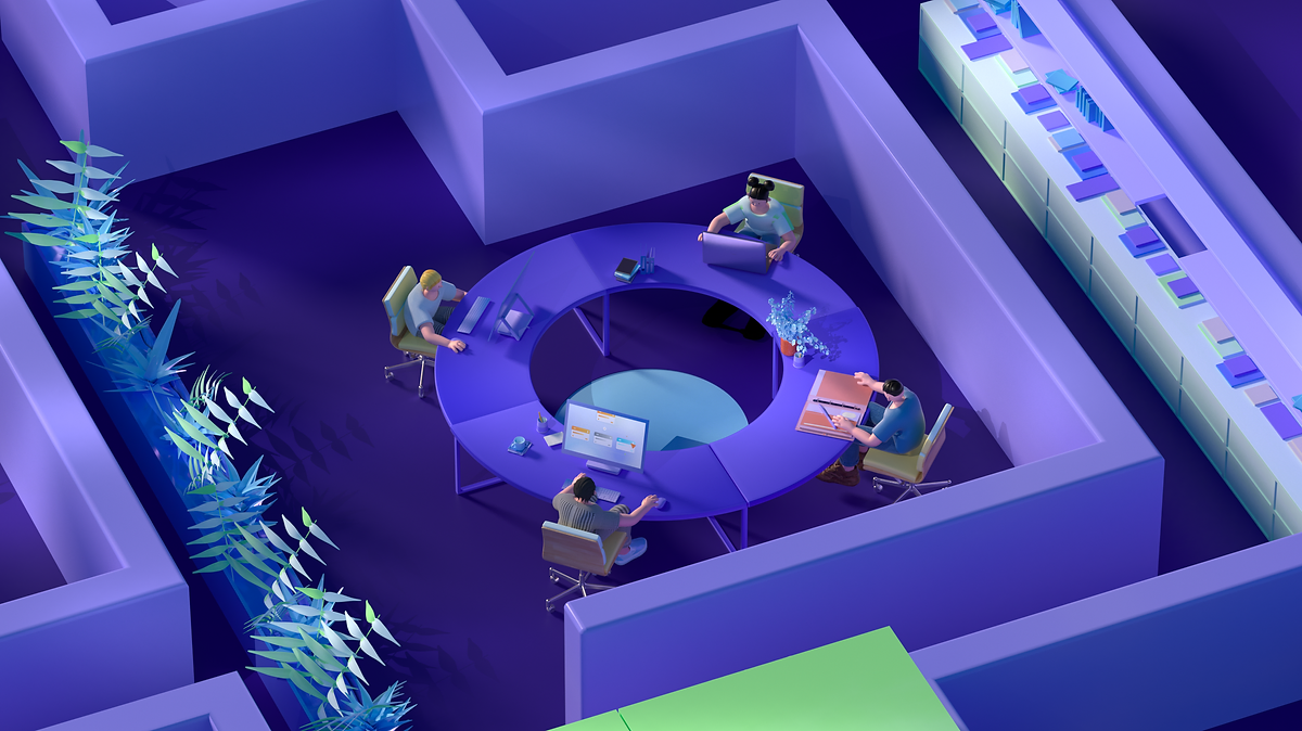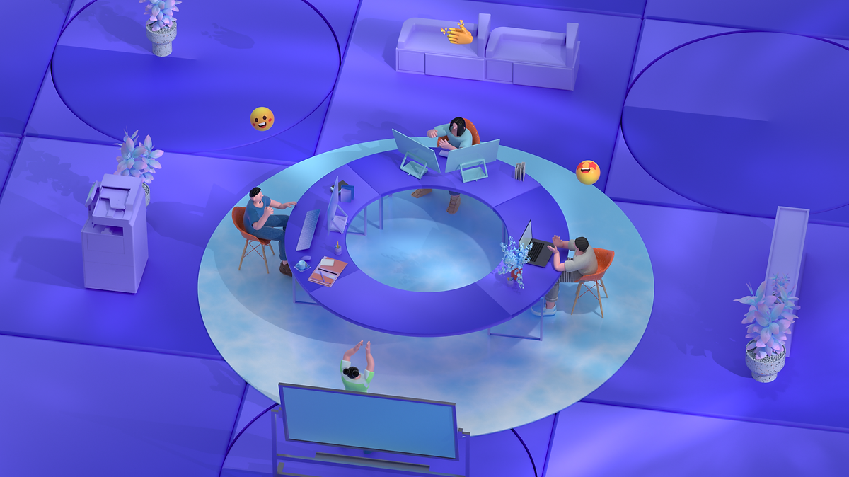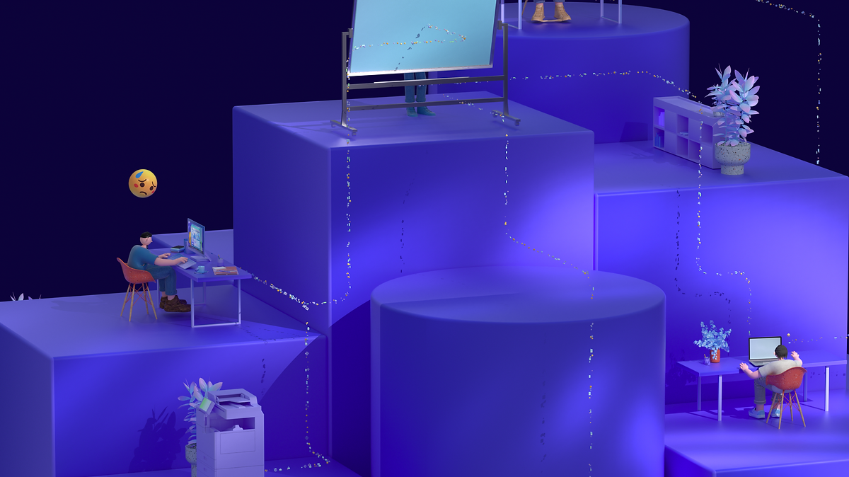 结合今年的主题与KV意向,延伸出传达内容。无代码的风潮,从星星点点的对个人的影响,开始越来越成气候,对小部门小团队产生积极影响;最后越来越完备的无代码平台更打通了部门协作,对整个巨大的组织也产生了积极影响。