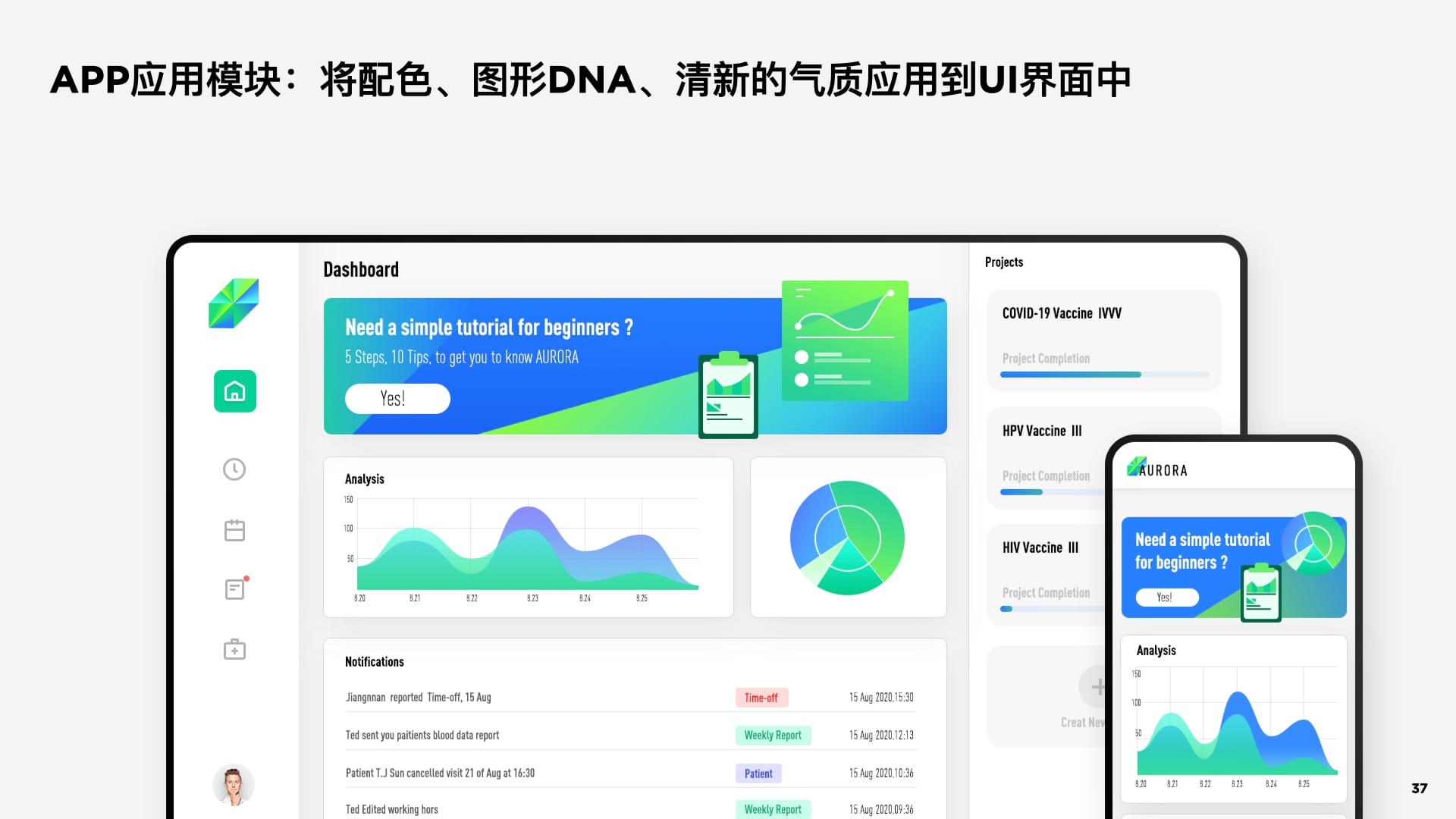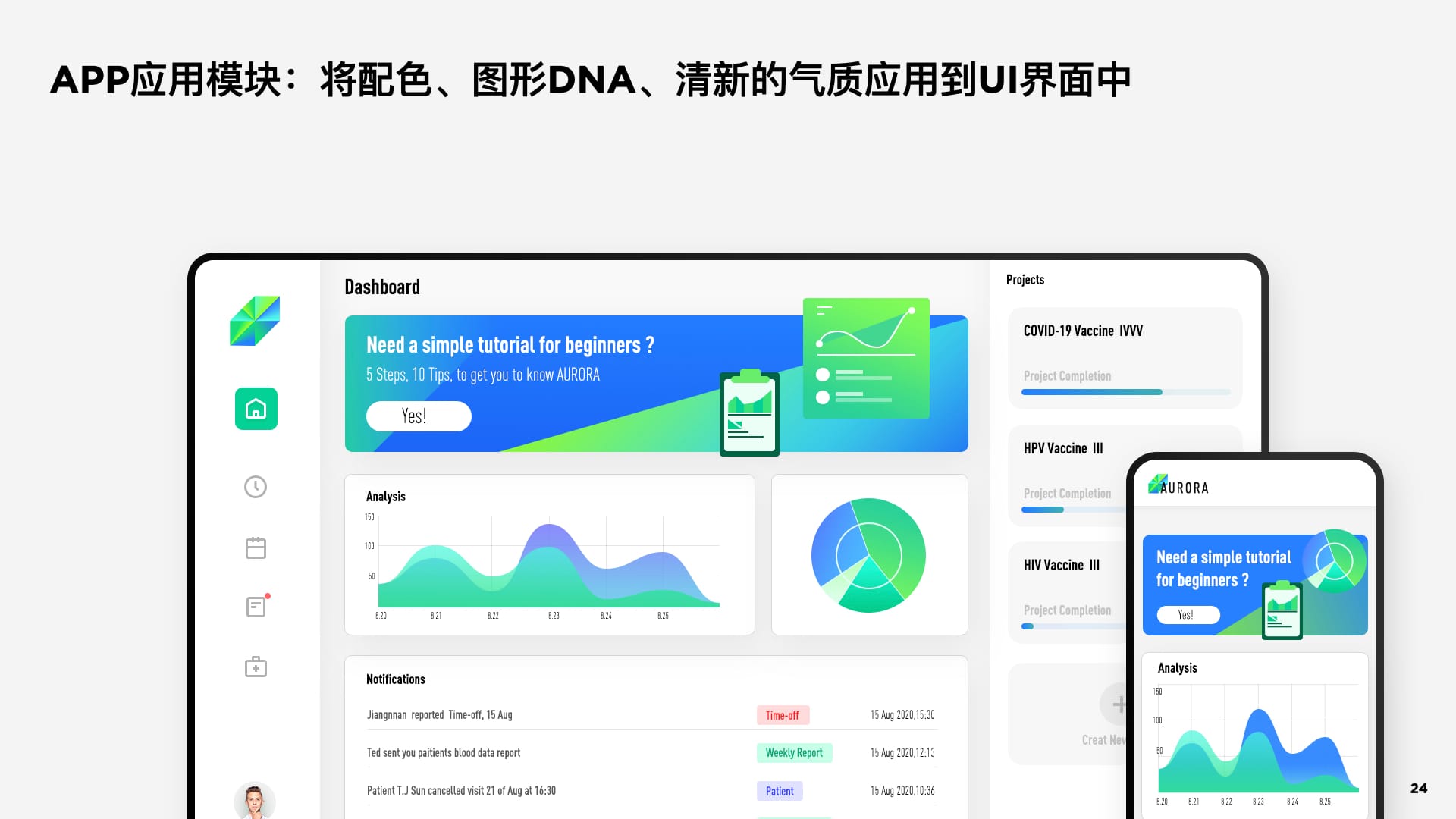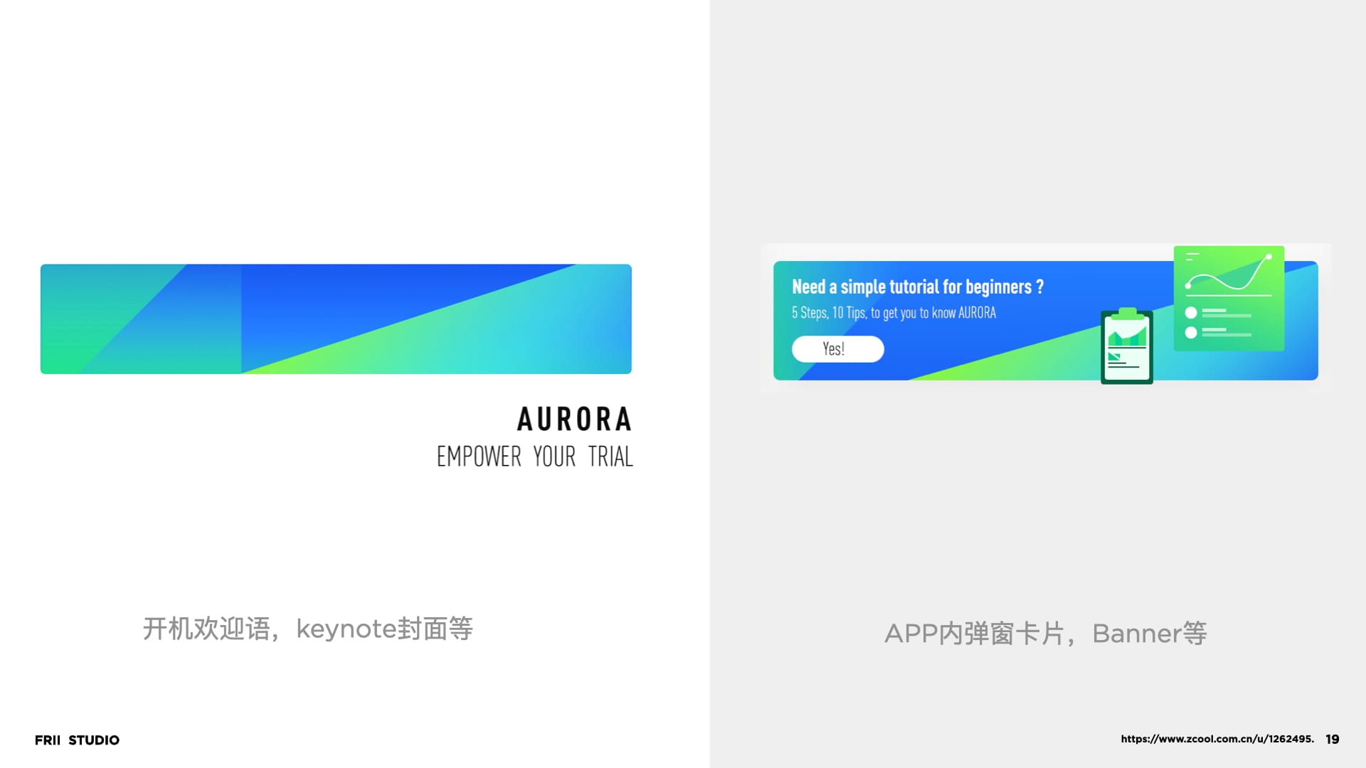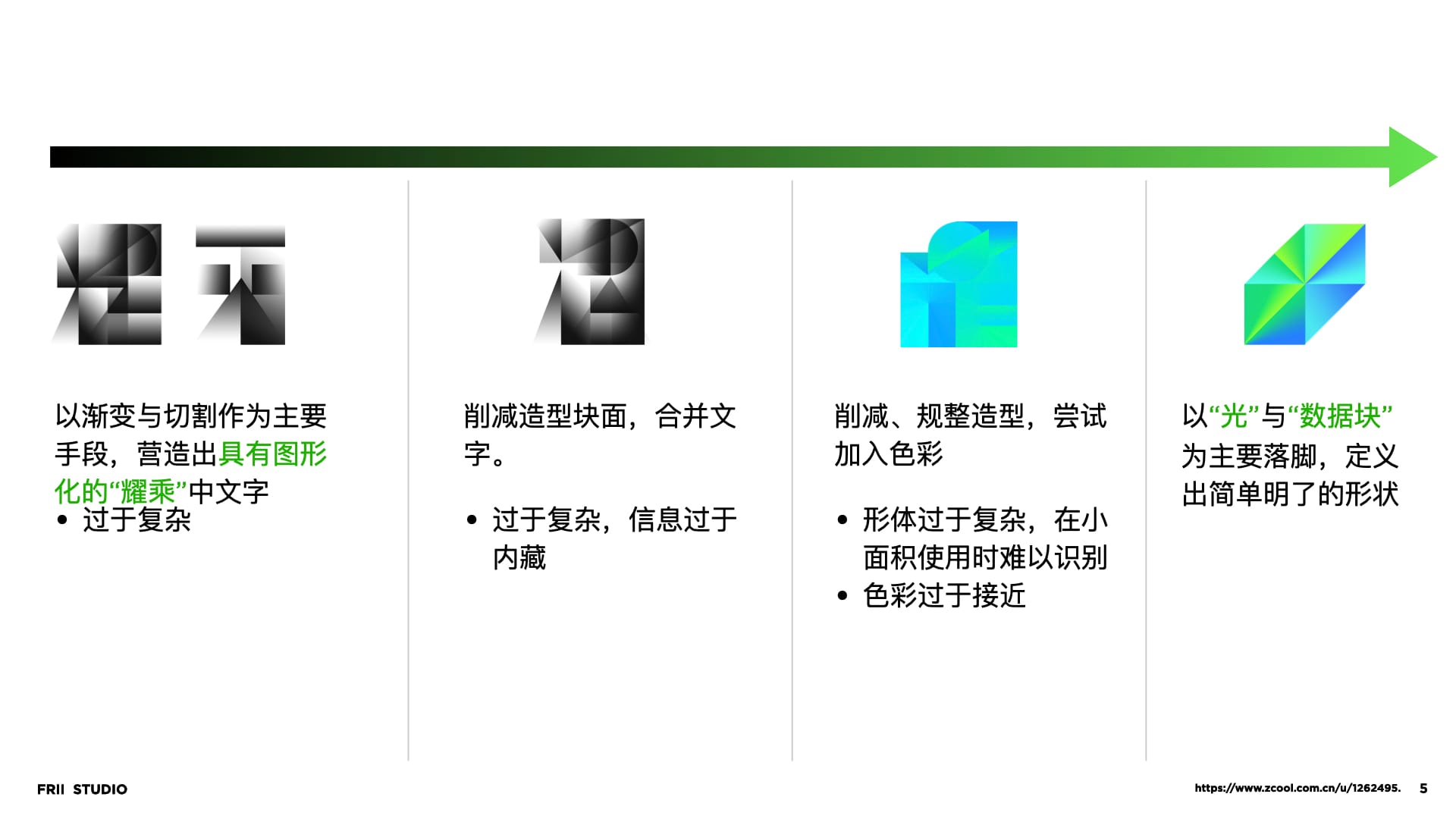 从AURORA极光的意向出发,我们对色彩与造型做了抽象。将客观表现提取成主观存在,这一步,每一位设计师都会有不一样的主观表达,这也是相同命题下,会产生不同方案的原因。而这都逃不开我们约定的“人格气质”。最后,我们归纳出视觉表达手法“渐变”与“切割”,将这两个手法进行logo造型建立。