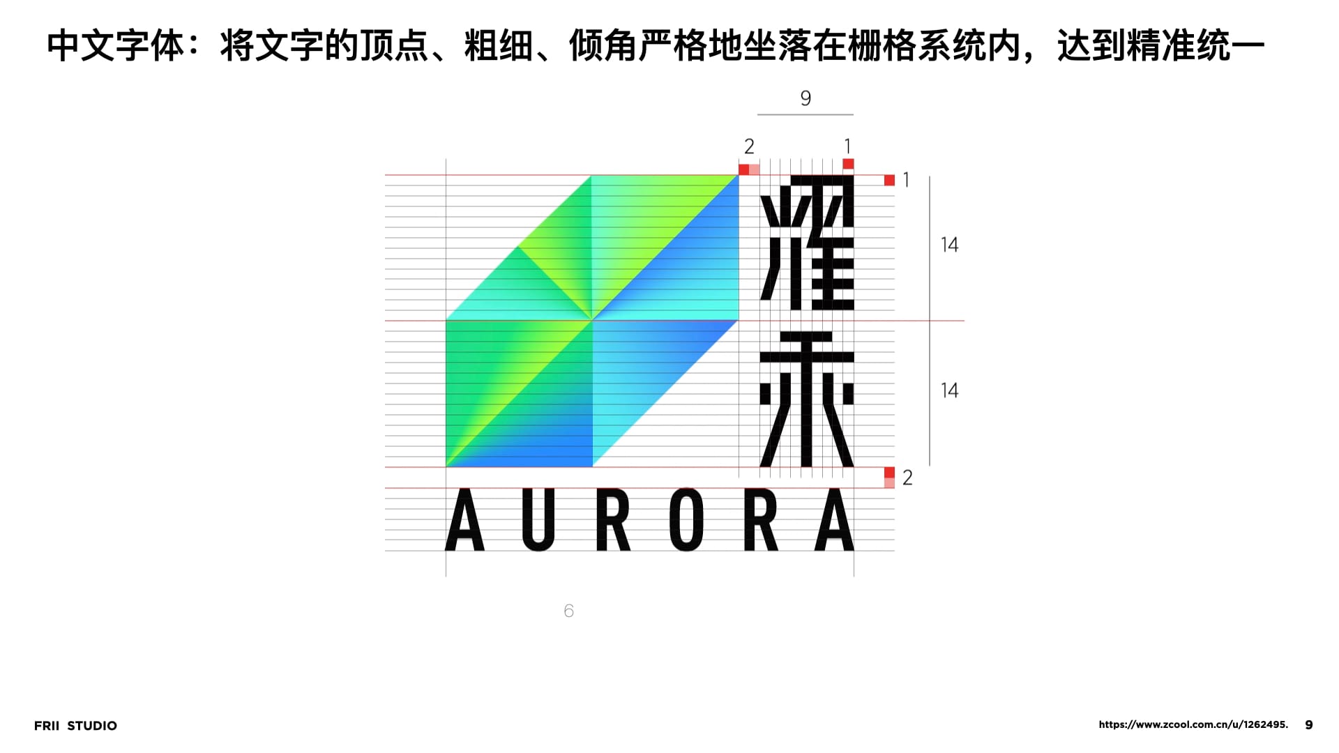 - 为了统一好“中文”和“英文”的笔画粗细,我们建立了一套网格系统。将两者的笔画粗细,倾斜角度进行了最大程度的统一。