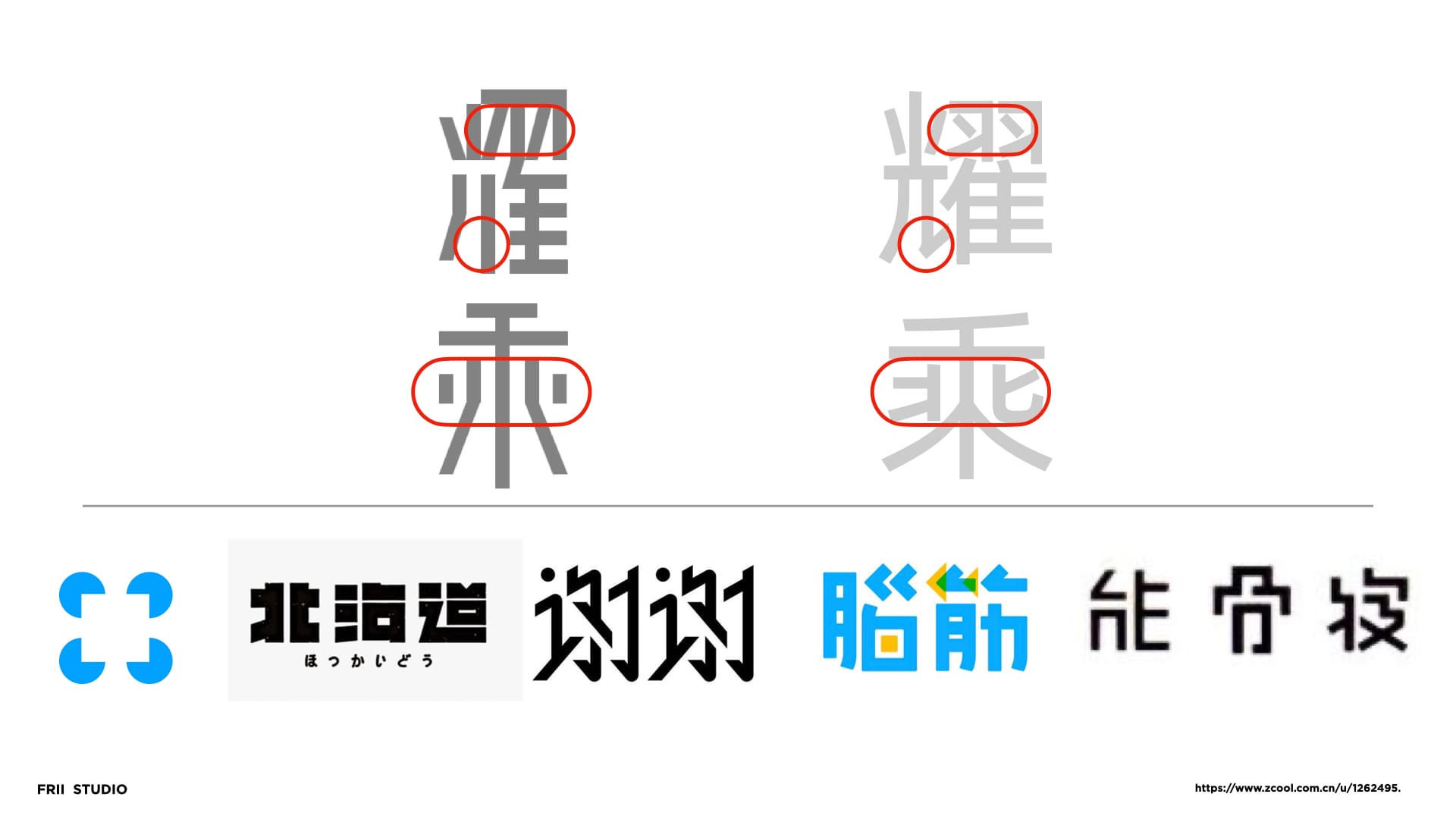 中文字体:利用视觉延伸效应,削减笔画数,使字形更精简,更轻盈,更独特。视觉延伸效应:人类在观察事物时,大脑会不自觉地对缺省的部分进行补全。或是延伸物体的延长线,或是根据经验自动补齐缺少的部件。