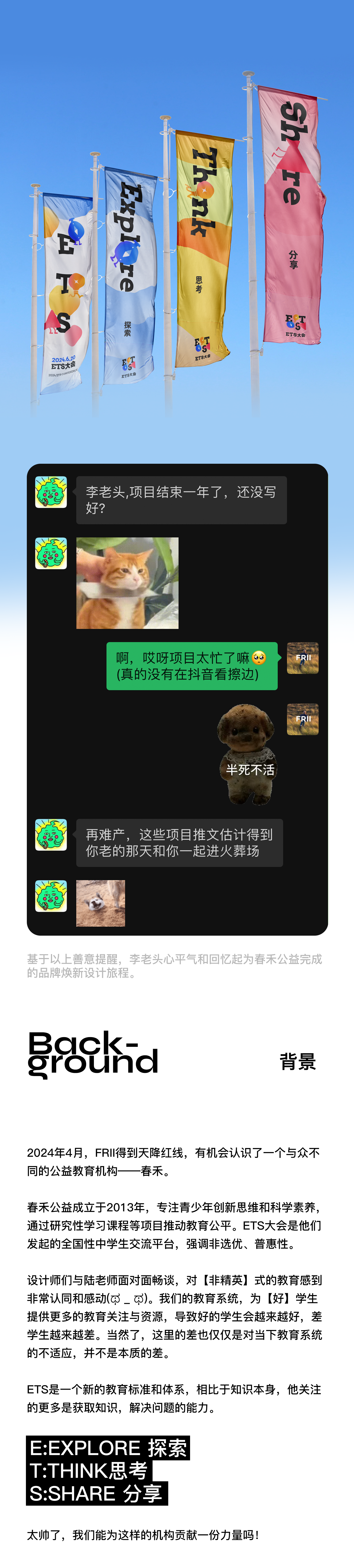 1-视觉影像 ETS | 公益教育品牌视觉重塑,看完身体都暖了 助力教育之光品牌焕新,还在搞分数?out了!我们需要的,是任何时候解决问题的能力。 FRII Design Apr 14, 2025 1 min read FRII Design Apr 14, 2025 - 1 min read Apr 14, 2025 1 min read The link has been copied!
