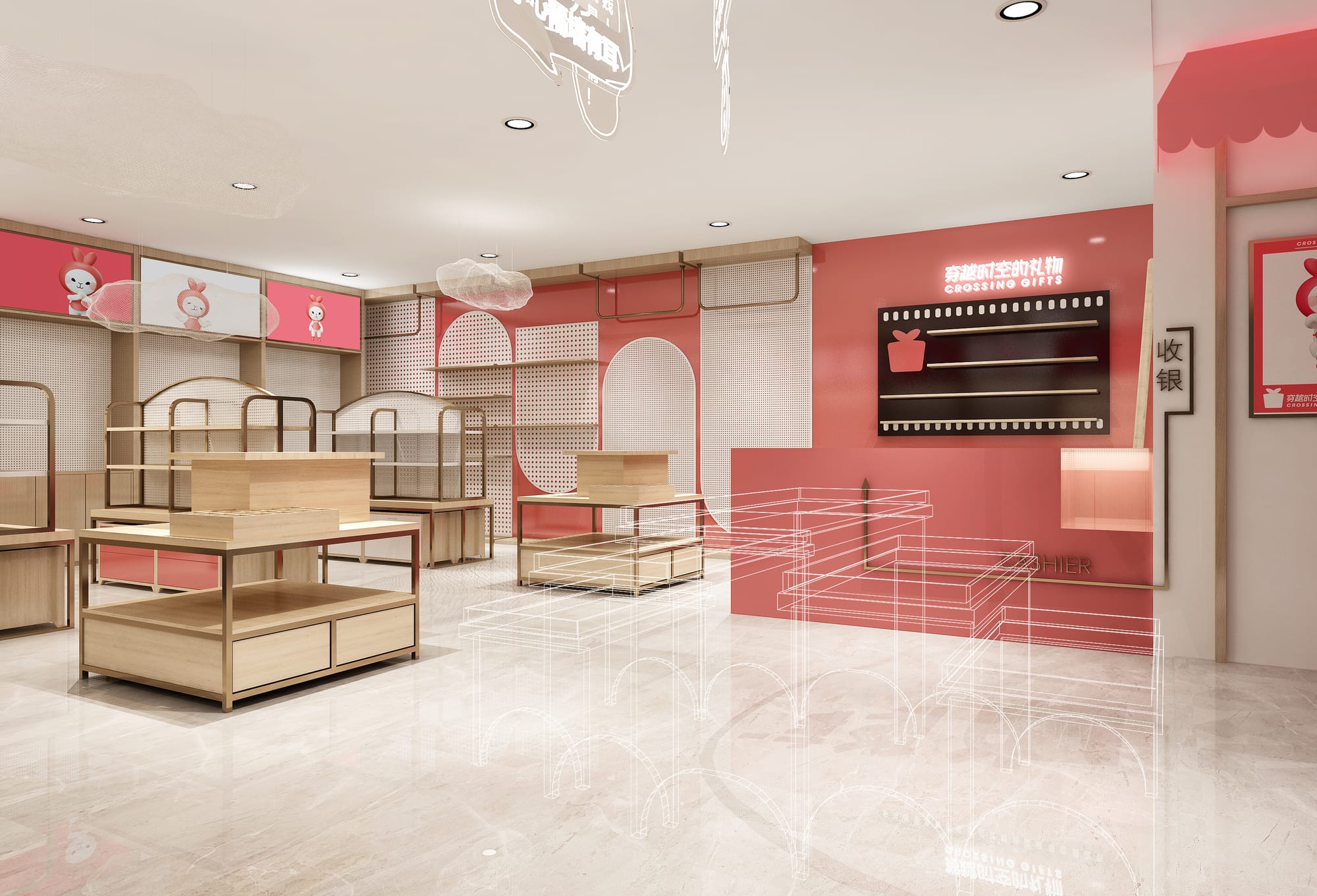 这次项目是横店一个线下纪念品商店。源起是横店需要一个品牌系统的定义,会涉及到方方面面,比如平面视觉、吉祥物、实际产品周边、以及线下空间。我们主要参与线下空间的设计。
