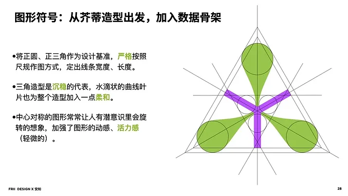 寻找一个视觉符号,他要能够承载“数”;也要承载“植”;在水滴形的叶片与数据的骨架中,我们融合出超酷的几何符号。