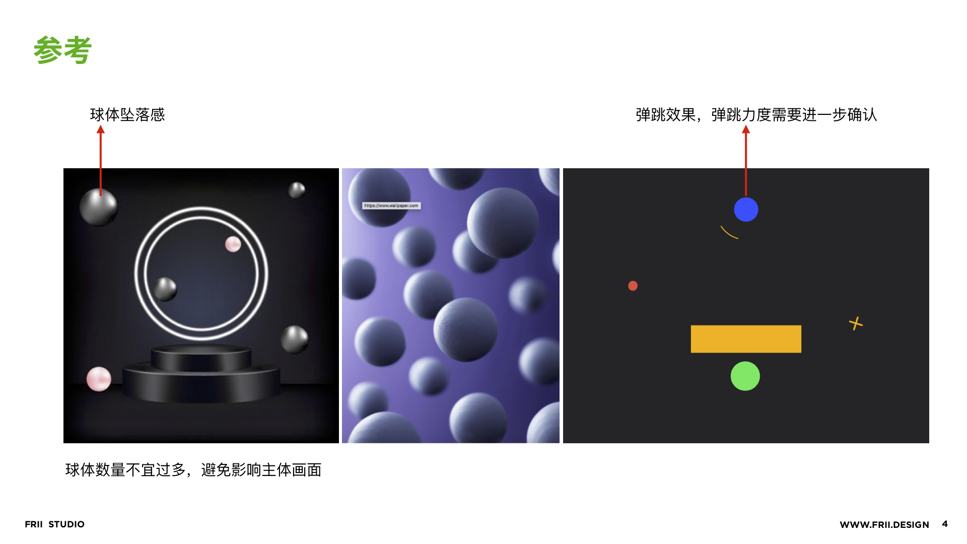 所以需要集中解决的项目痛点是小球运动方式如何实现循环的需求。在经过团队的一番思考和讨论之后,按照大致的思路和方向我们为客户提供了一些参考,提供了不同小球运动方式不同方案: