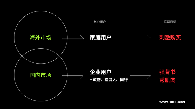 2:国内:受众为企业用户,直接信息接收者为企业采购。ToB的采购是一个更慎重的过程,会着重突出技术、能力、格局。第二阶梯受众是同行、政府部门、甚至是投资人。在公司上升期内,需要将公司能力更好地放大呈现,以获得更多的发展资源。